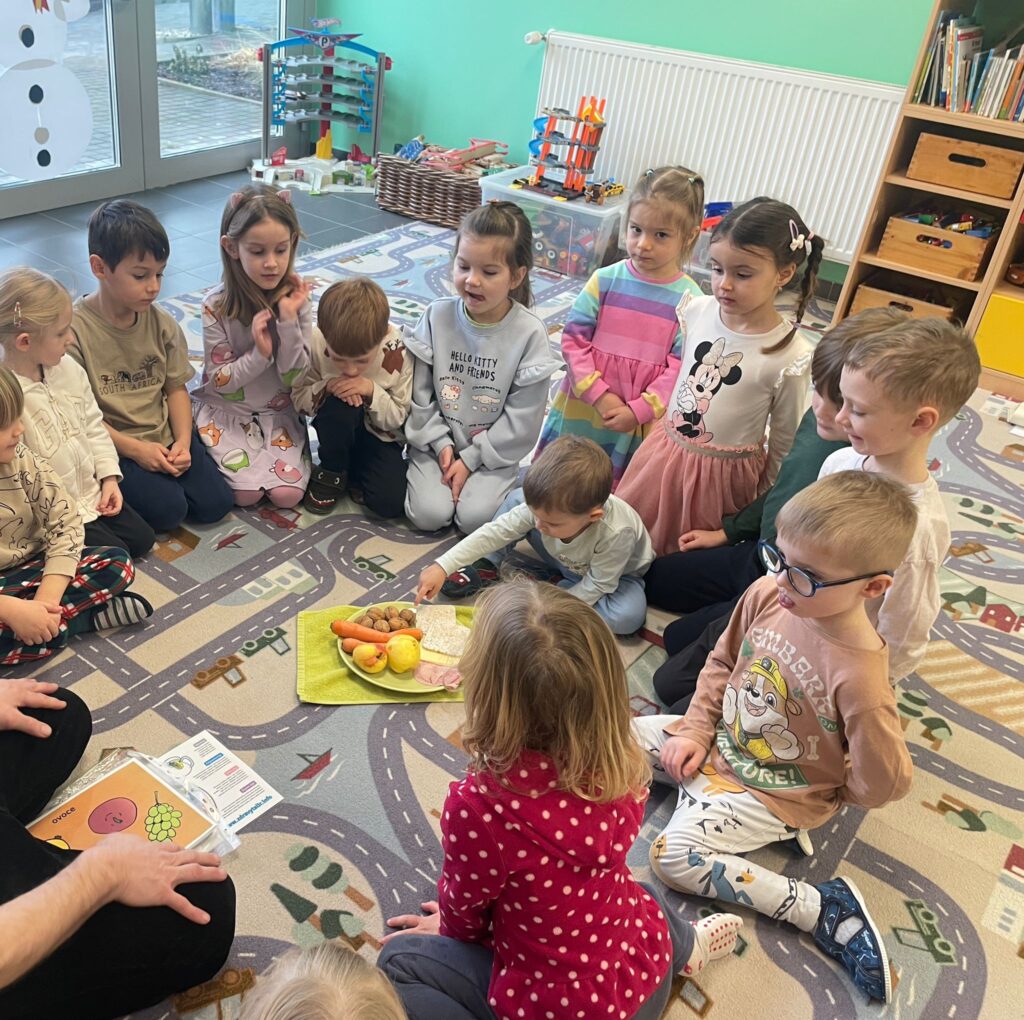 Do školky za námi dorazila společnost AMPI s výukovým programem „Co mám k svačině“. Ochutnávali jsme ovoce, zeleninu, šunku, sýr a sacharidy. Také jsme si povídali o vláknině. Dozvěděli jsme se, jak díky ní tělo funguje. Užili jsme si to a dozvěděli se něco nového 🙂